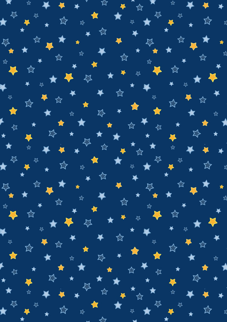 This playful star scatter features light blue and golden yellow stars—both filled and outlined—dancing across a rich navy background. The simple, small-scale design adds a touch of whimsy while remaining versatile and balanced. It's a perfect coordinate for bringing brightness and contrast to your winter and holiday sewing.