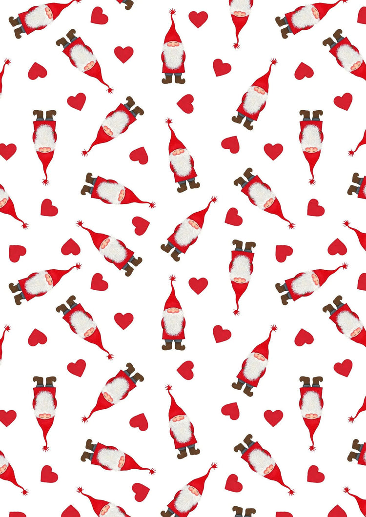 Lewis and Irene's third collection with Eva Melhuish. This season, delight in Tomtens Village. This fabric features Tomten in red, and red hearts finished on a White background. 100% Cotton. 44 Inches Wide. Sold by the half yard.