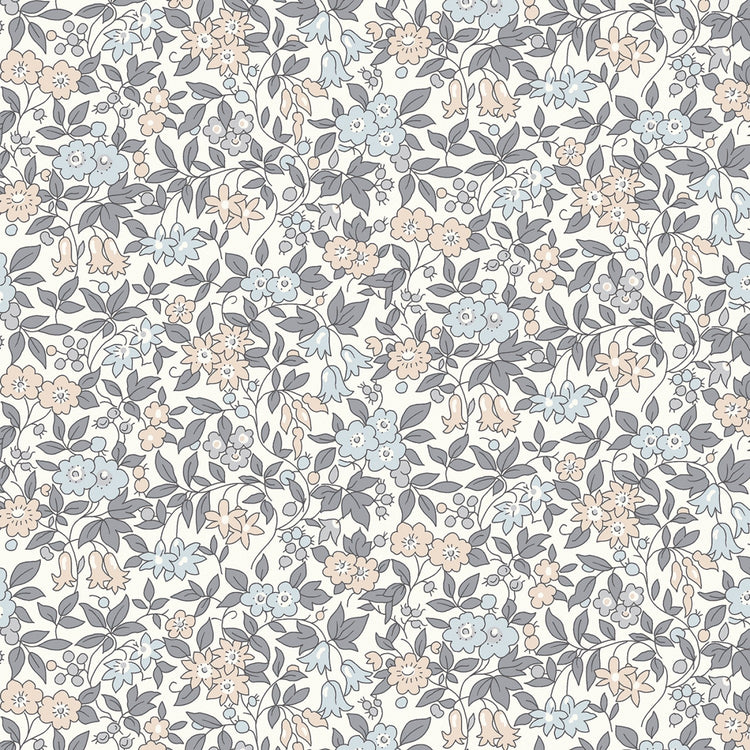 This print features berries, daisies, bell flower and forget-me-nots drawn with a very crisp and fine outline, paying homage to the traditional Liberty style and layout. Machine Wash Cold / Line Dry.