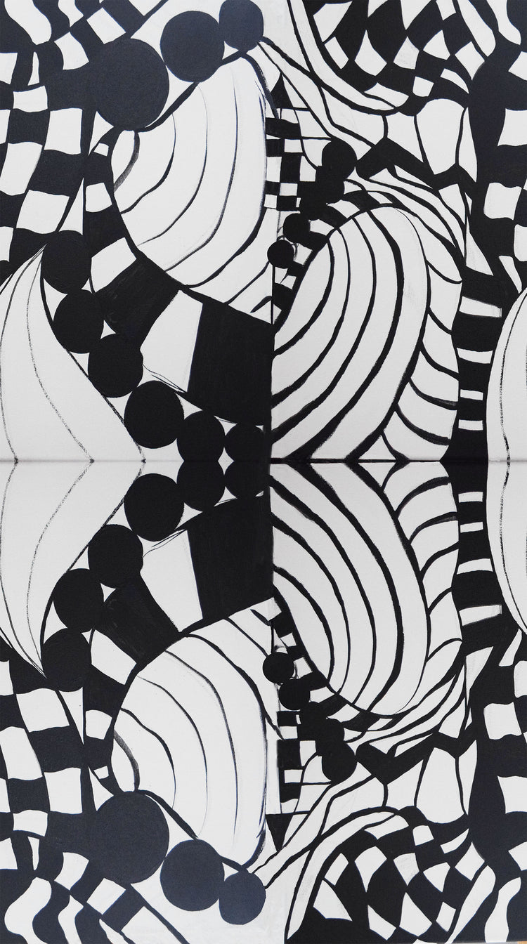 This striking black-and-white print features bold abstract linework, sweeping curves, and geometric checkerboard elements for a dramatic modern look. The high-contrast design adds strong visual impact while still working beautifully as a coordinate for the vibrant colors in the Transcendence collection. Printed on 100% cotton, it’s ideal for borders, bindings, bags, and graphic quilt layouts that benefit from crisp monochrome style.