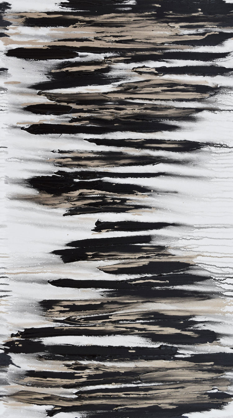 This striking abstract print features bold black brushstrokes layered over soft white and taupe highlights, creating a dramatic modern texture. Printed on a cotton canvas, it has a heavier, sturdier hand compared to standard quilting cotton from the Transcendence collection. Ideal for bags, home décor, structured accents, and mixed-media sewing projects where durability is important. A sophisticated neutral with artistic depth that pairs beautifully with the vibrant designs in the rest of the collection.