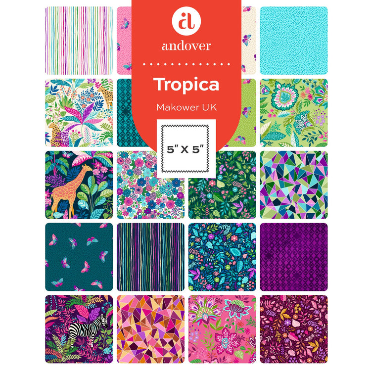 Features a coordinated mix of prints from the Tropica collection by Makower UK