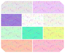 Get ready to add some playful color to your next project with this cheerful blender by Tula Pink. This wonderfully versatile fabric features small scattered dots, stars, and birds on a bright sea foam background.