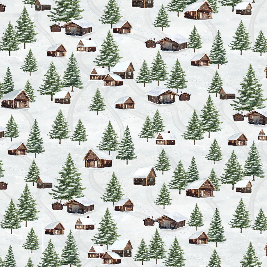This enchanting fabric bundle features 10-inch squares, perfect for quilting projects with a winter theme. The design showcases a variety of patterns including a rich brown plaid, a subtle green and white check, delicate snowflakes on white, a soft beige and white plaid, a green pine needle print, and charming scenes of snow-covered cabins and trees. Made from 100% cotton, this bundle provides a high-quality, soft texture ideal for creating cozy winter quilts, crafts, or home decor items. Bundle includes 42 precut 10" squares.