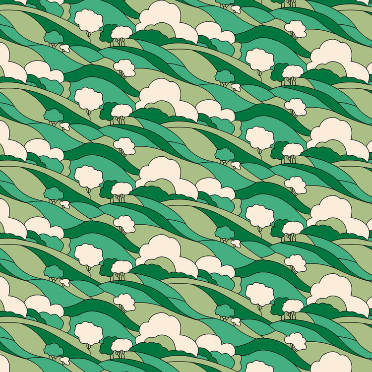 Woodland Walk pulls together elements from the forest for endless creative combinations. Hillside was originally created in 1968, by the famous British designer - and Liberty’s design director at the time - Bernard Nevill. This graphic representation of a simplified landscape features delicately outlined clouds and trees, as seen through the distance across undulating rolling hills. Liberty Fabrics are traditionally screen printed onto soft Lasenby cotton, which is suited for craft projects, apparel, and classic patchwork quilting.
