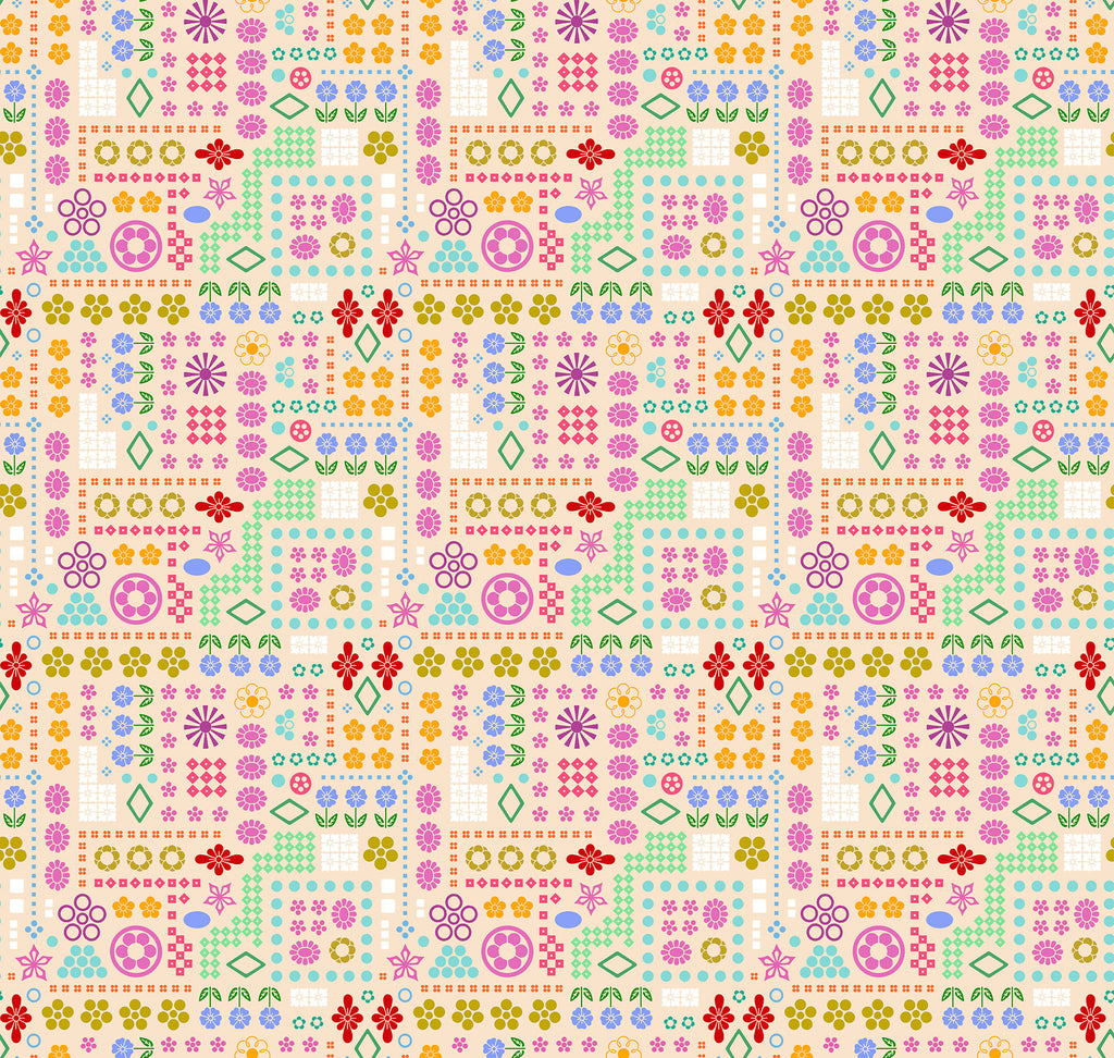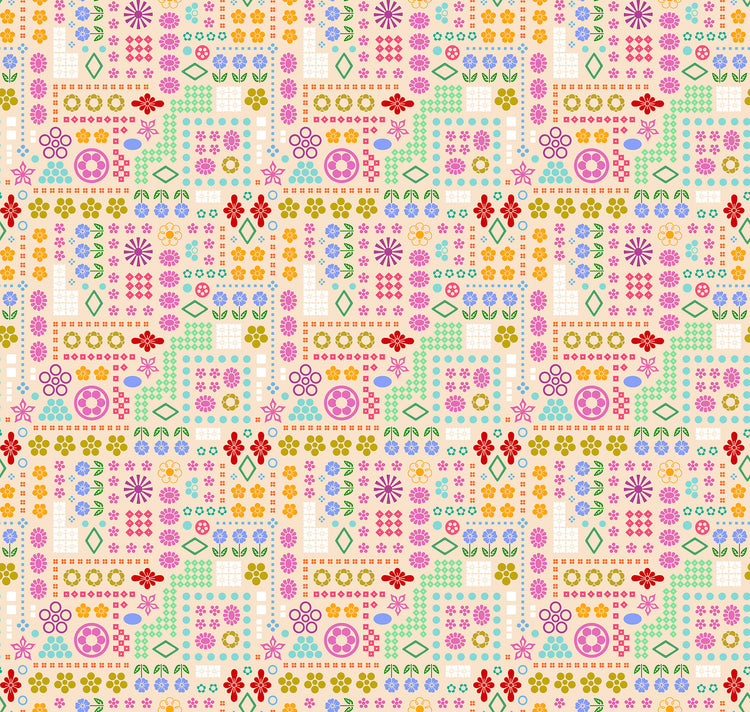 This print brings a playful, cross-stitch-meets-quilt-block vibe to the Yesterday collection with its mix of tiny florals, geometric motifs, and charming grid-like arrangements. The layout feels nostalgic yet modern, giving you a fun, handcrafted look without leaning into novelty. Its multicolor palette makes it easy to pair with a wide range of prints, especially bright florals and coordinates from Juliana Horner’s line. A great choice for quilts, bags, pouches, scrappy projects, and cheerful home décor.